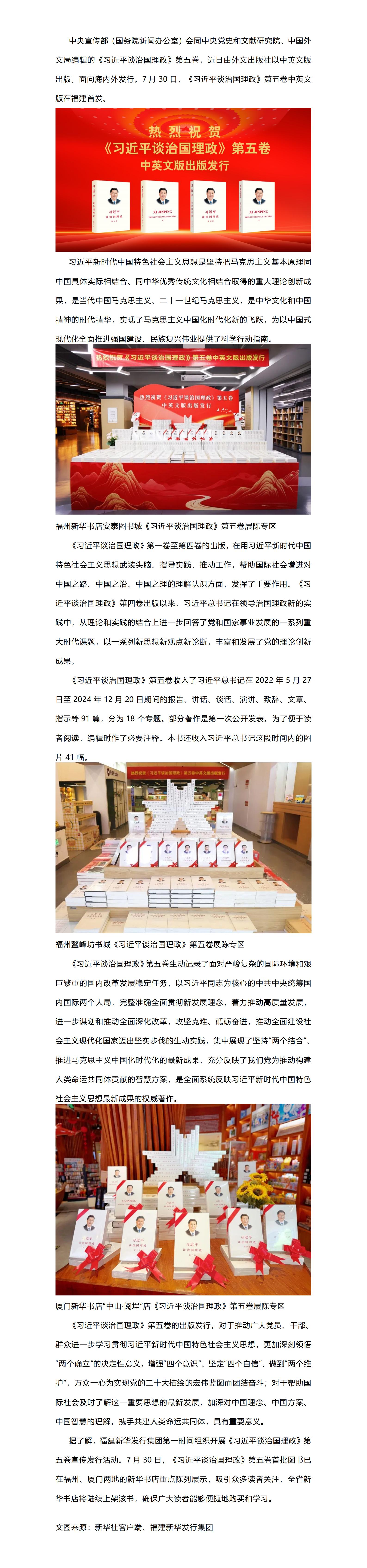 《习近平谈治国理政》第五卷中英文版在福建发行,福州、厦门新华书店已同步上架