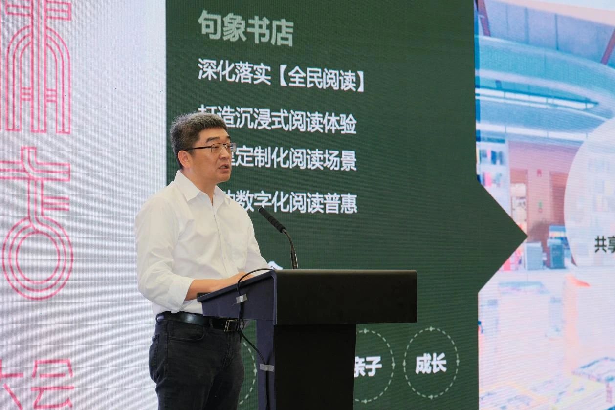 2025年6月,句象书店北京保利广场店开业。至此,这家由教育文化产业集团学大教育打造的复合型公共阅读空间品牌已在全国开设了10多家连锁门店。此次大会上,学大教育创始人、董事长兼CEO金鑫分享了句象书店四大特色业务:一是共享阅读的全面实施。每家门店图书总量均超10万本,全部面向会员开放借阅,读者可在全国范围内通借通还。截至目前,累计借阅数量70多万本,累计借阅会员数量逾2.7万。二是文化空间的多元构建。书店拥有句象剧场、会议室、自习室等多个主题活动空间,可为各类全民阅读主题活动提供场地定制服务。同时还跨界联动银行、企业、社区等多元场景,构建以文化阅读为核心的“文化生活共生体”。三是文化阅读活动的组织。2024年至今,句象书店共组织文化阅读活动1275场。四是阅读服务创新。以科学引导+工具创新,实现线上线下服务的融合连接。作为民进会员企业单位,学大教育于2024年10月携手开明慈善基金会,发起“开明阅读成长计划”公益项目,并于2024年11月在青岛句象书店开业典礼上正式启动。金鑫表示,未来句象书店推动书店进入全民阅读推广体系、公共文化服务体系,联动民进组织推进“开明阅读、五育并举”,推动与社区、商圈、学校的合作,探索“书店+”模式,打造“15分钟文化惠民圈”。促进文化科技融合,参与城市智慧阅读推广计划,推进线下阅读空间与线上数字内容的结合,让公共阅读空间突破物理的限制,打造阅读新生态。贯彻“政府主导-市场运作-社会参与”长效机制,采取更丰富更立体的合作模式,建设社区图书馆、企业书房,推动阅读资源下沉,助力书香城市及儿童友好城市建设。