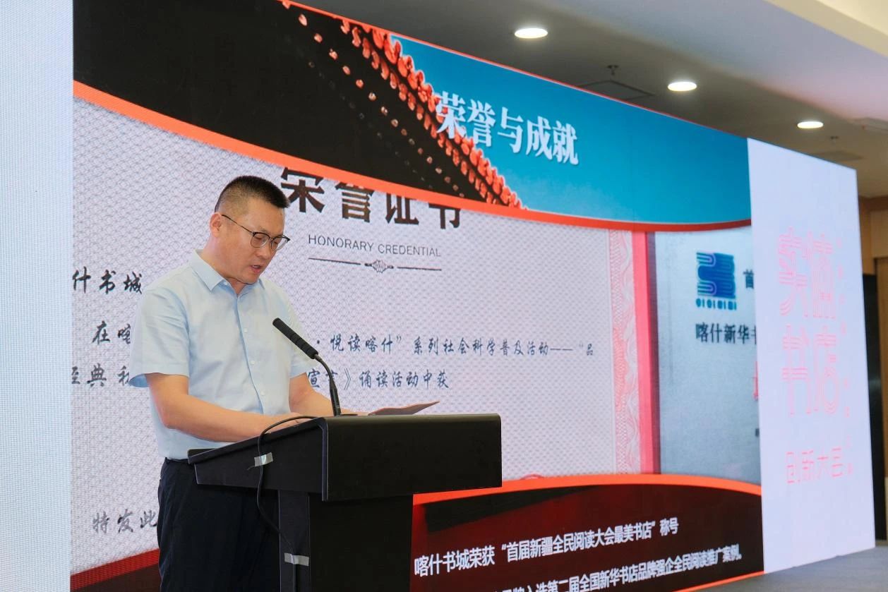 2024年,在广东新华发行集团和新疆新华书店的共同努力下,原喀什书城在为期100多天的升级改造后重张开业。升级后的书城,建筑面积达5392平方米,图书品种丰富多样,同时还引入了 2200 多种风格各异的文创产品供读者挑选。新疆喀什新华书店有限责任公司党委书记、董事长翟强在大会主题分享中表示,这是广东援疆“十四五”规划中“文化兴疆”战略的落地实践,生动诠释了“让中华文化通过现代载体焕发新生”的要求,成为新时代“文化戍边”的典范之作。2024年9月,喀什书城荣获“首届新疆全民阅读大会最美书店”称号。2024年10月,“诵读经典 书韵喀什”全民阅读品牌入选第二届全国新华书店品牌强企全民阅读推广案例。为了更好地发挥书城作为构建全民阅读精神家园媒介作用,喀什新华书店联动12个县级门市,打造了“11365书香润支部” 品牌(“11” 代表1 座城市 1 家书店,“365”代表 365天活动不断,打造阅读周、月、季品牌活动),通过党建+全民阅读的双线并行,加强对外合作,先后推出了南国书香节——喀什分会场,上海书展——喀什分会场,“新华姐姐”讲绘本故事会,喀什地区儿童公益阅读活动等品牌活动。此外,喀什新华书店也在积极推进跨界合作等多元融合发展方式,以电商直播等线上营销方式提升品牌影响力。8月23日-26日,第二届新疆全民阅读大会将在喀什举办。翟强表示,喀什新华书店将以盛会为约,共赴书香新疆新篇章。