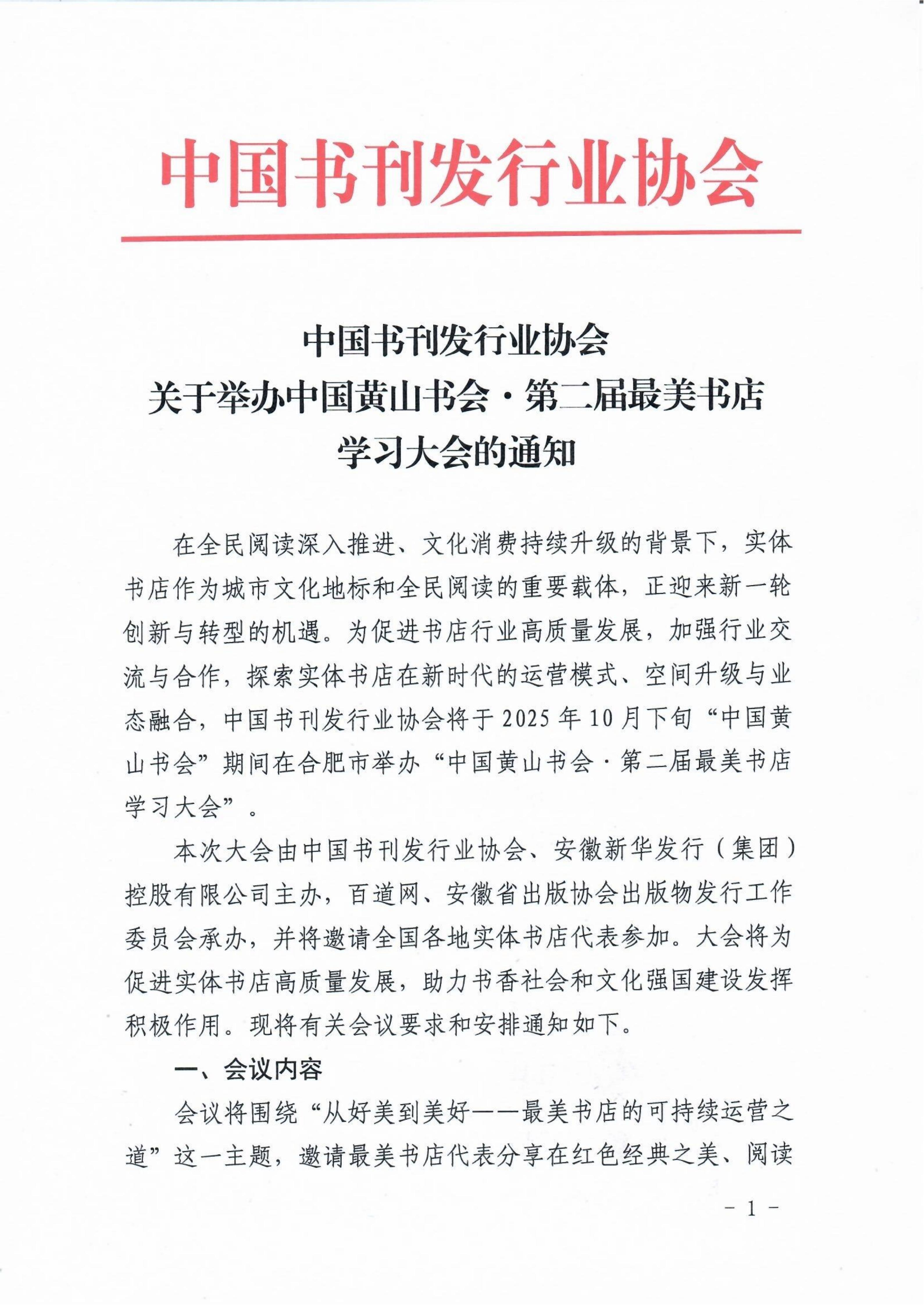 中国书刊发行业协会关于举办中国黄山书会·第二届最美书店学习大会的通知