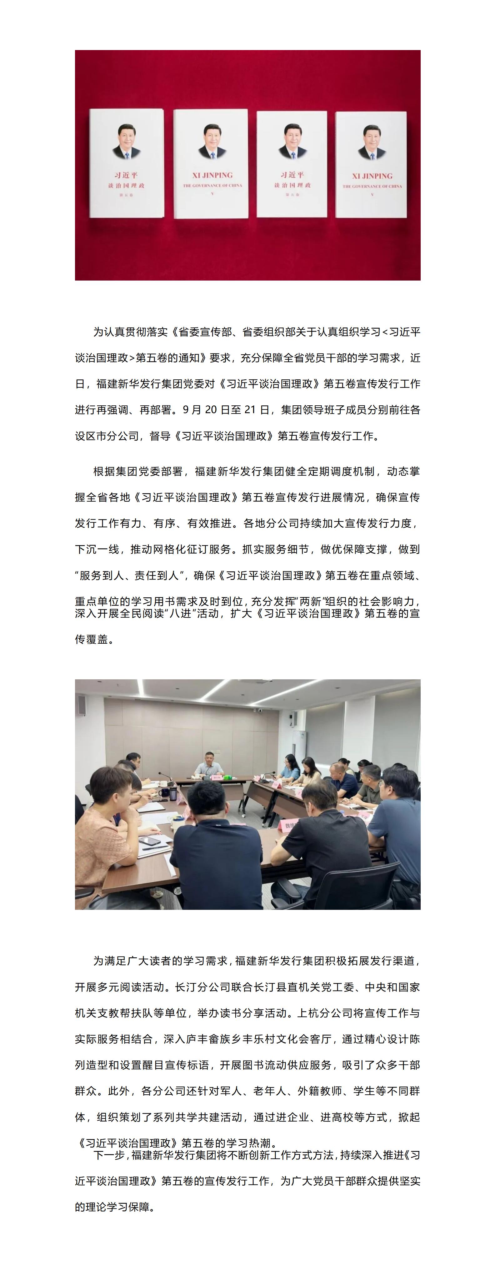 福建新华发行集团持续推进《习近平谈治国理政》第五卷宣传发行工作